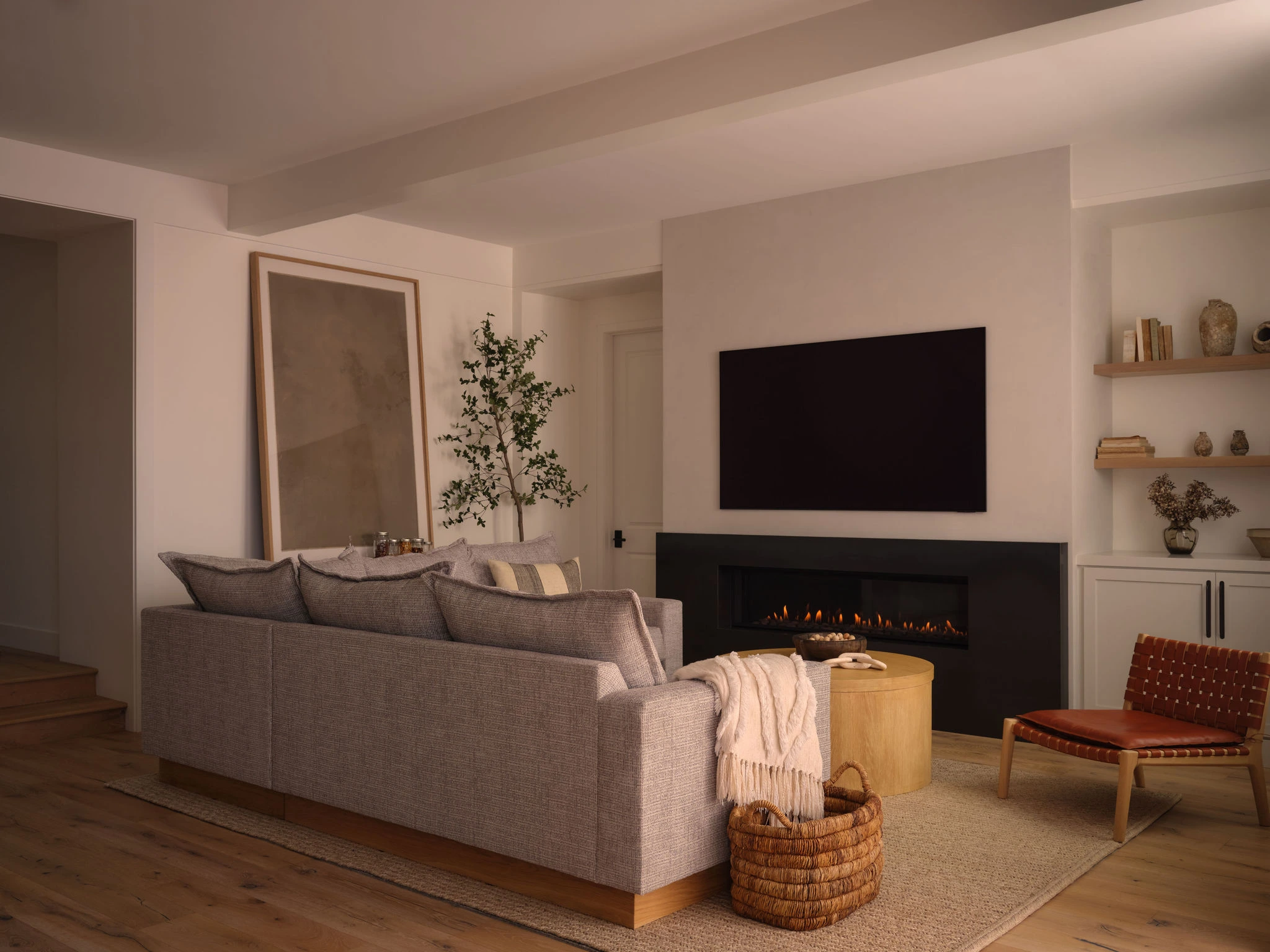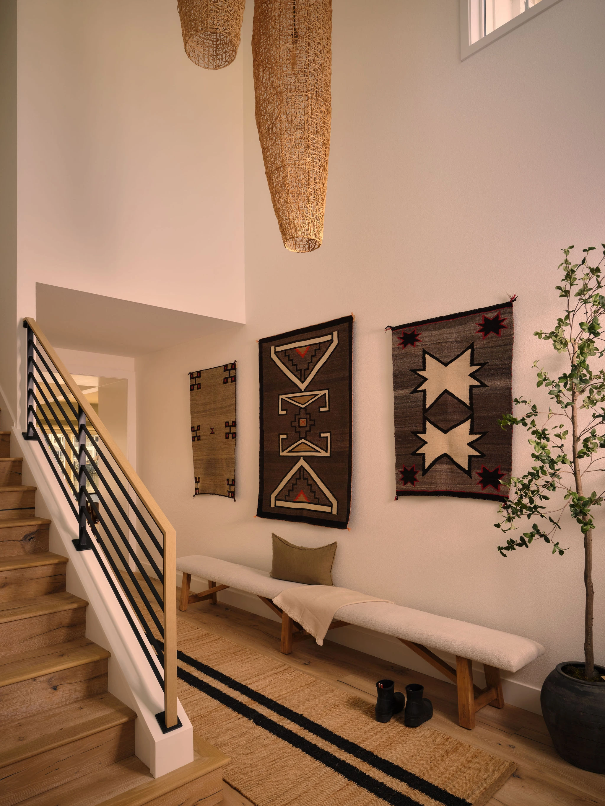 A curated mix of textiles and furnishings introduces warmth, texture, and quiet layers of interest, while remaining neutral and inviting. Grounded in natural materials and framed by walls of glass, this home blurs the line between indoors and out—allowing the surrounding landscape to serve as the artwork. Each fabric, metal, tone, and texture was chosen with purpose, always in service of the architecture. Our role as the design team was to let the architect’s vision take center stage; we held deep appreciation for her achievement and sought to highlight those defining features.
